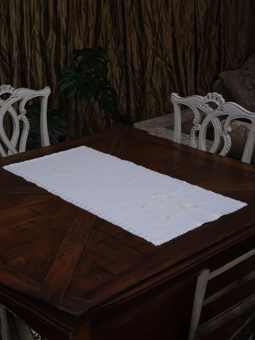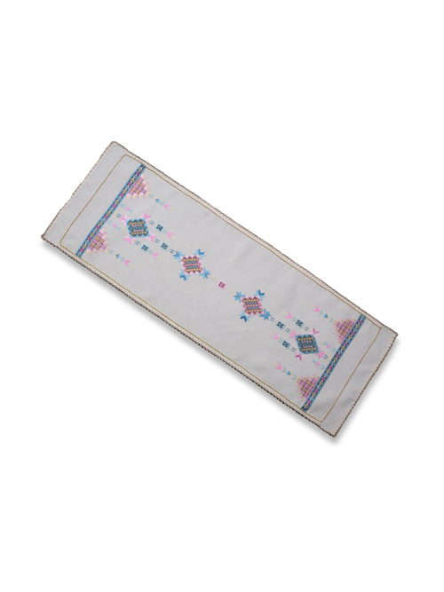 • 1965'lerde Beyaz İş Dolgu Tekniğiyle Desenlenmiş Sandık Eserinden Uyarlanan Dekoratif Örtü