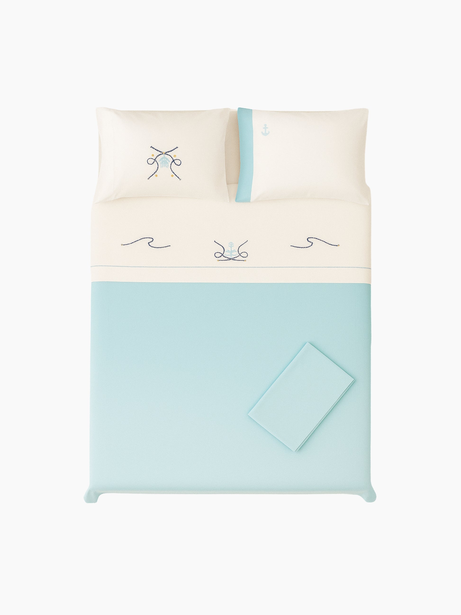 Deniz – Çapa ve Halat Motifli Pamuklu Keten Nevresim Takımı