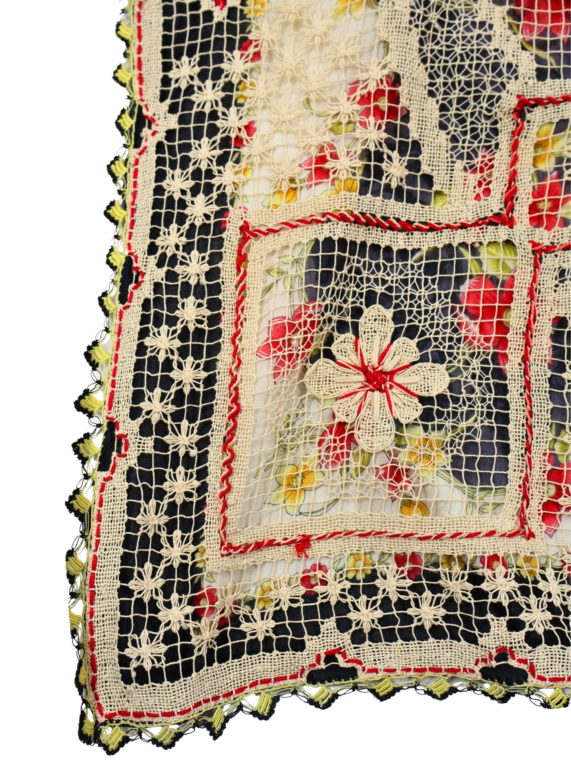Renkli İz – 1990’lardan Uyarlama Dantelli Antika Yazma Örtü
