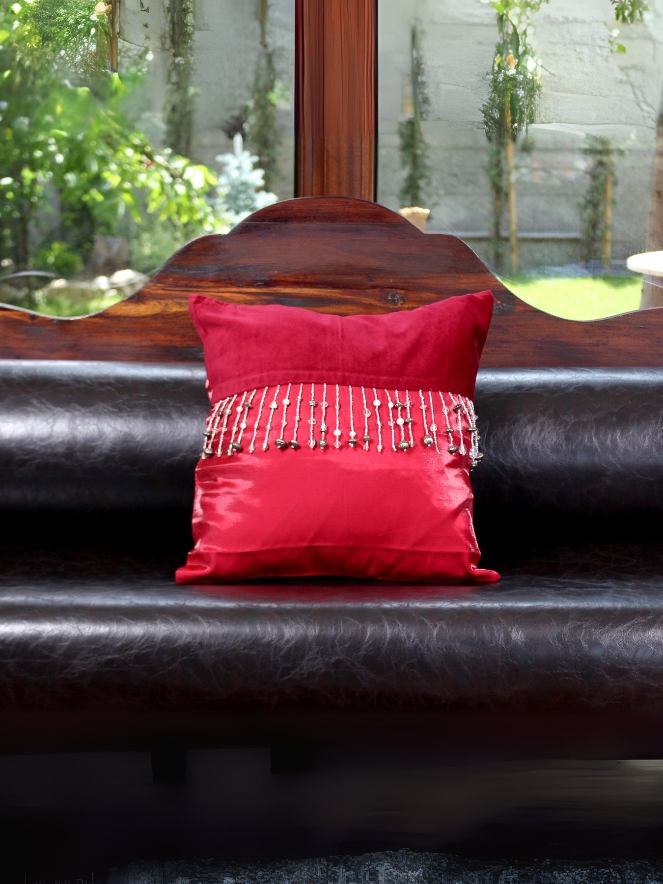 Bordo Sükûnet – Taş Detaylı Kadife & İpek Tafta Dekoratif Kırlent Kılıfı