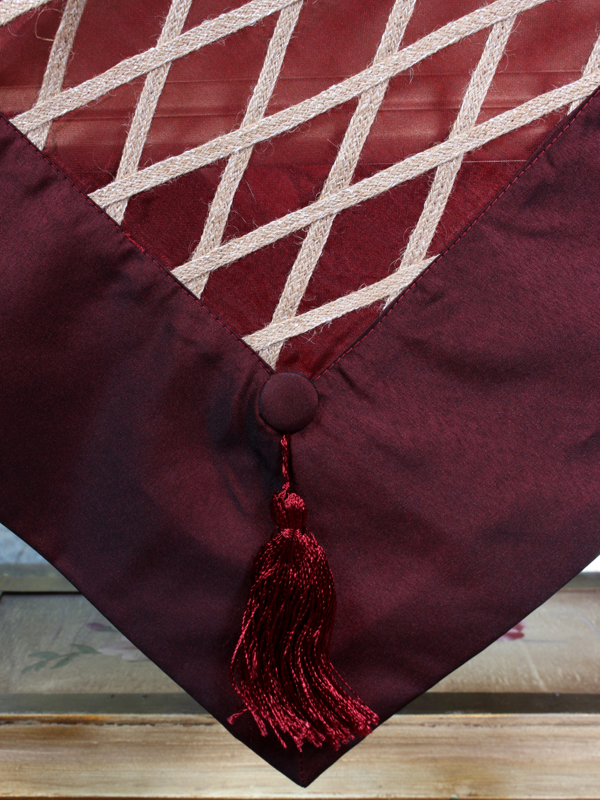Bordo organze, ipek tafta, doğal iplik, gold sim, floş ipek püskül