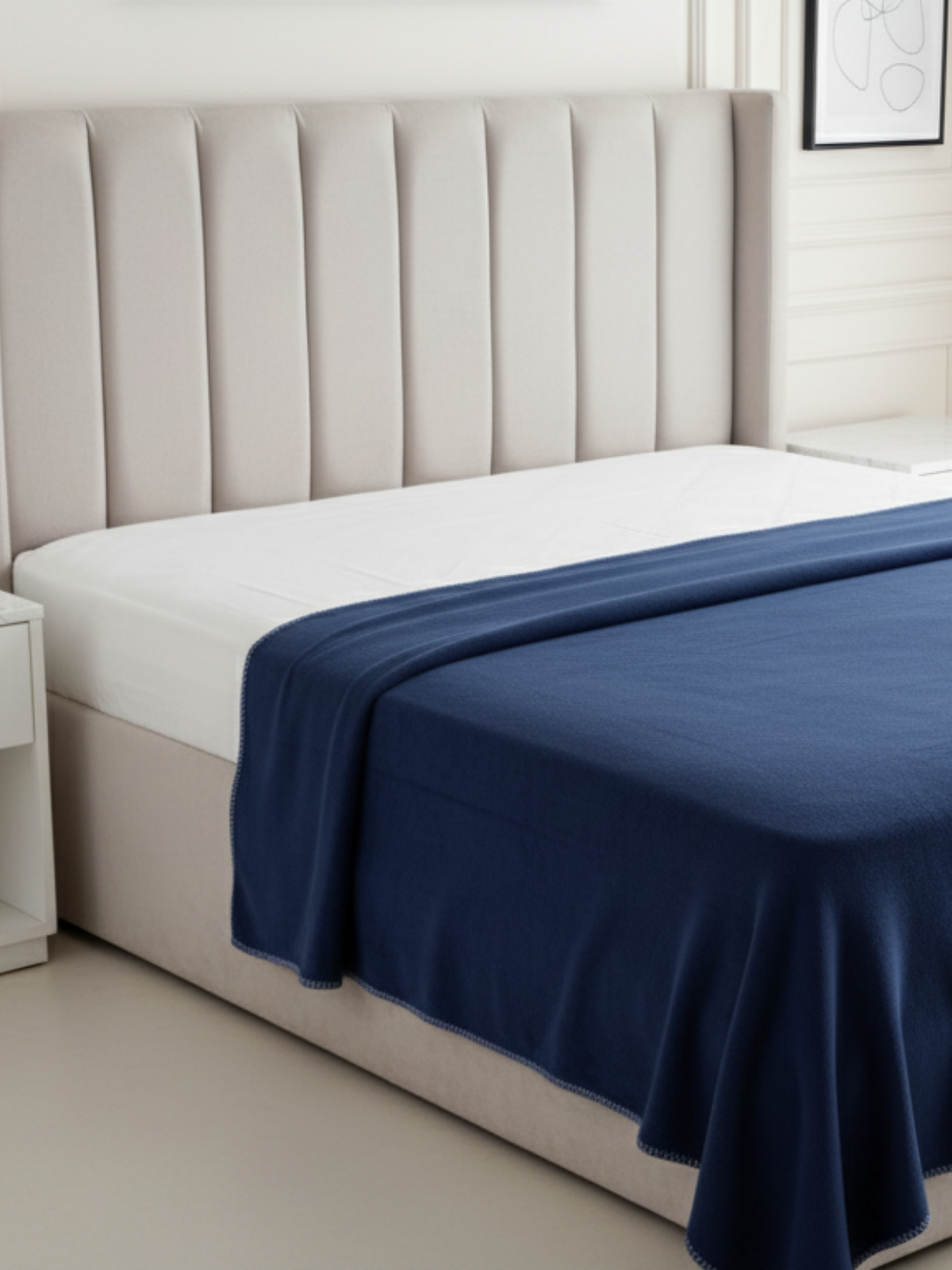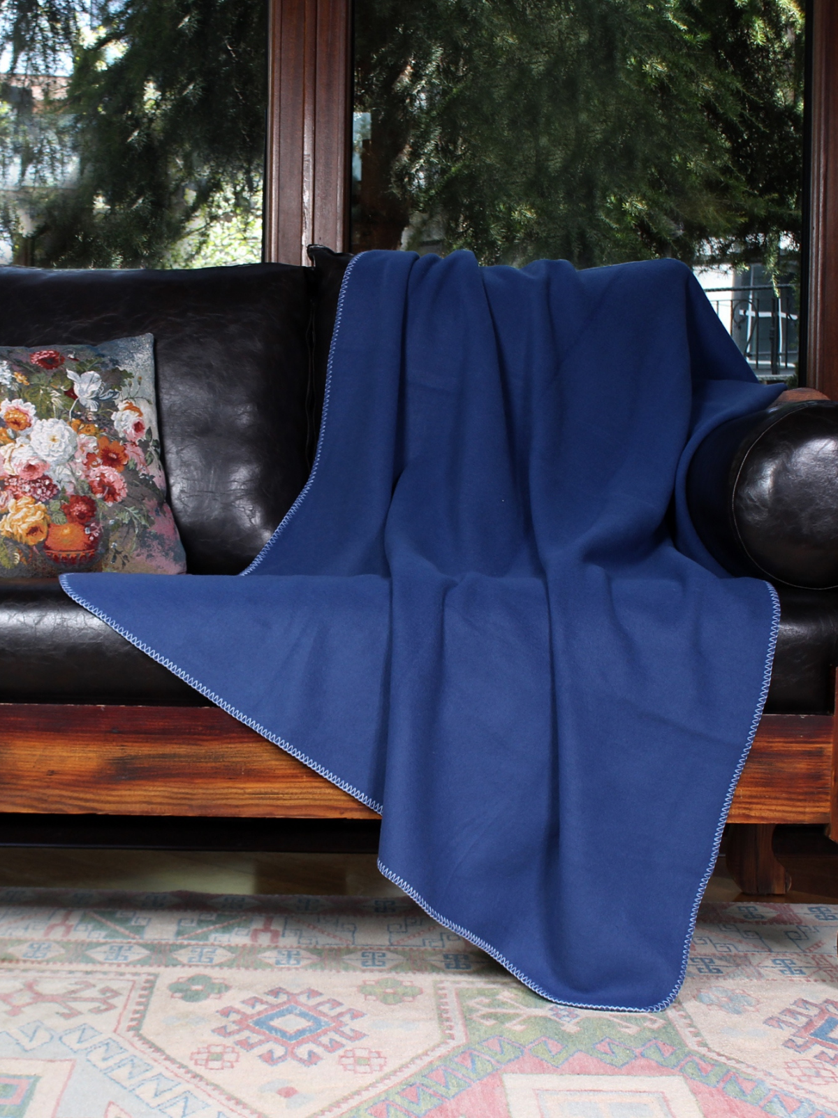 Kış günlerinde sıcaklık ve zarafeti bir araya getiren bu koyu mavi dokulu örtü; diz battaniyesi, koltuk şalı veya şık bir tamamlayıcı dekoratif parça olarak kullanılabilir. İspanyol tarzı kumaş yapısıyla hem fonksiyonel hem estetik bir dokunuş sunar.