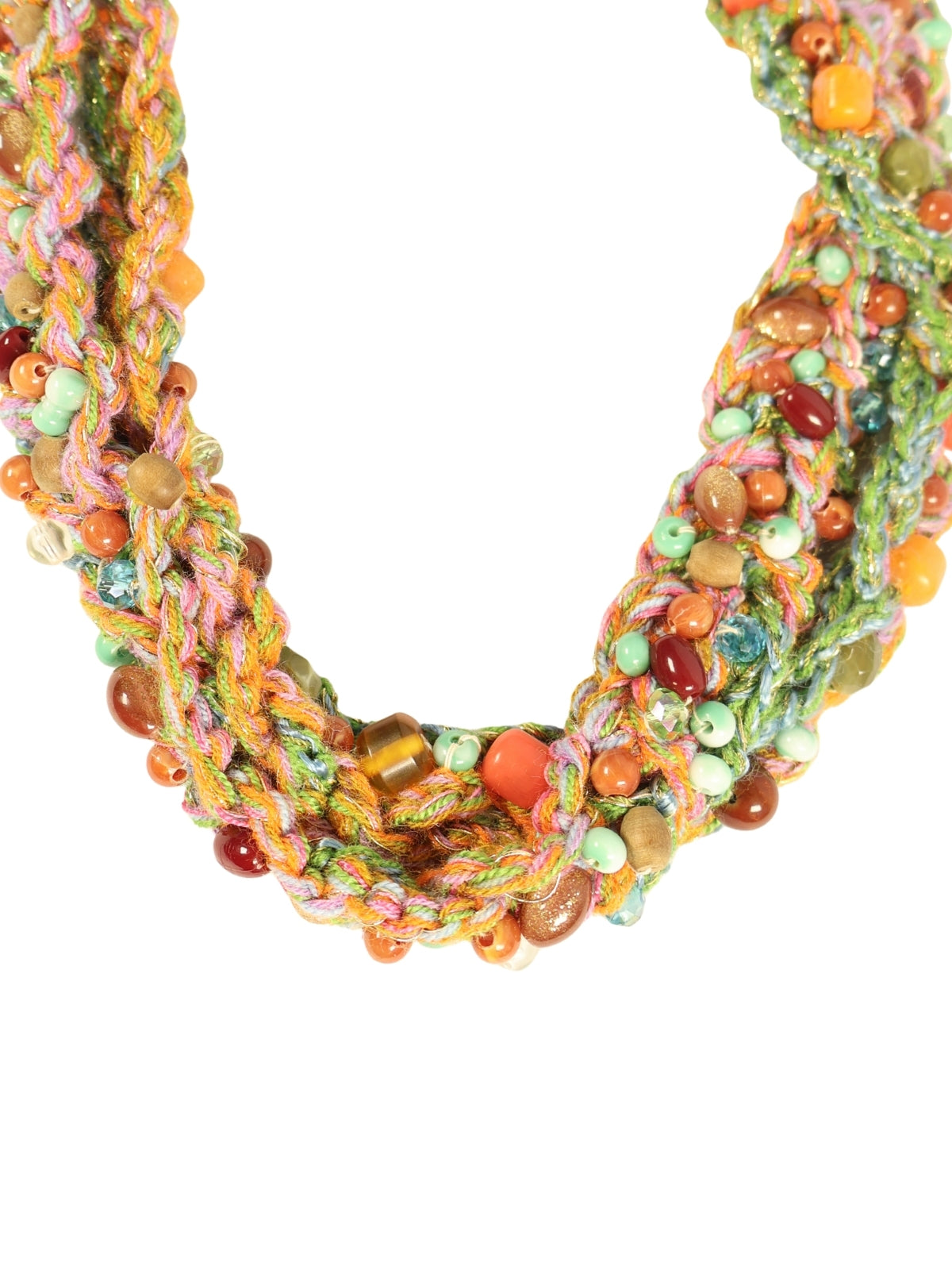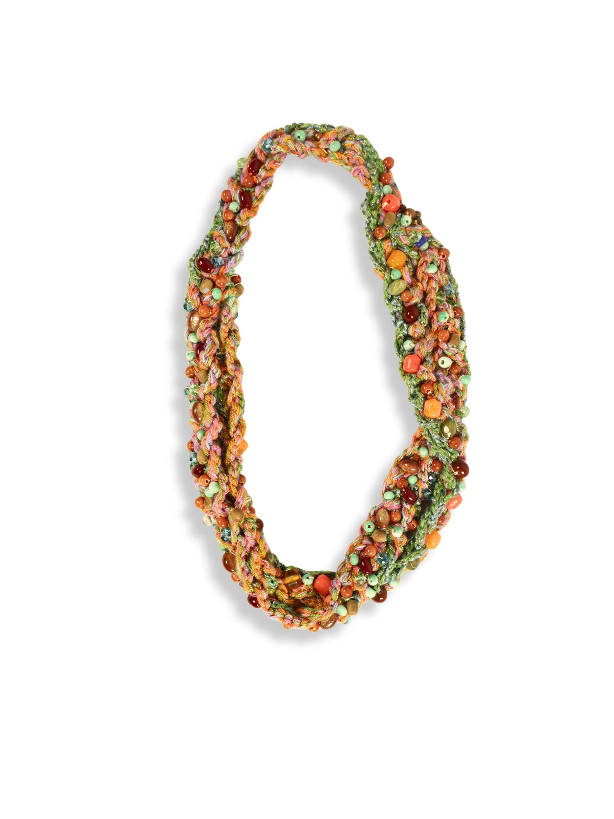 Renk Sarmalı – Simli Tığ İşli Taşlı Kordon Kolye