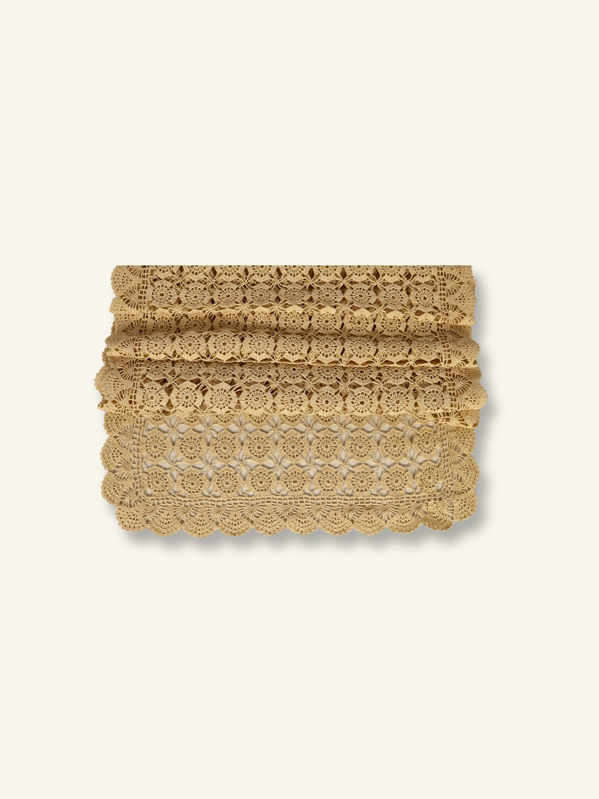 Bu nadide dantel, günümüz estetik anlayışıyla yeniden ele alınmış ve 33 × 135 cm ölçülerinde modern bir dekoratif örtüye dönüştürülmüştür.