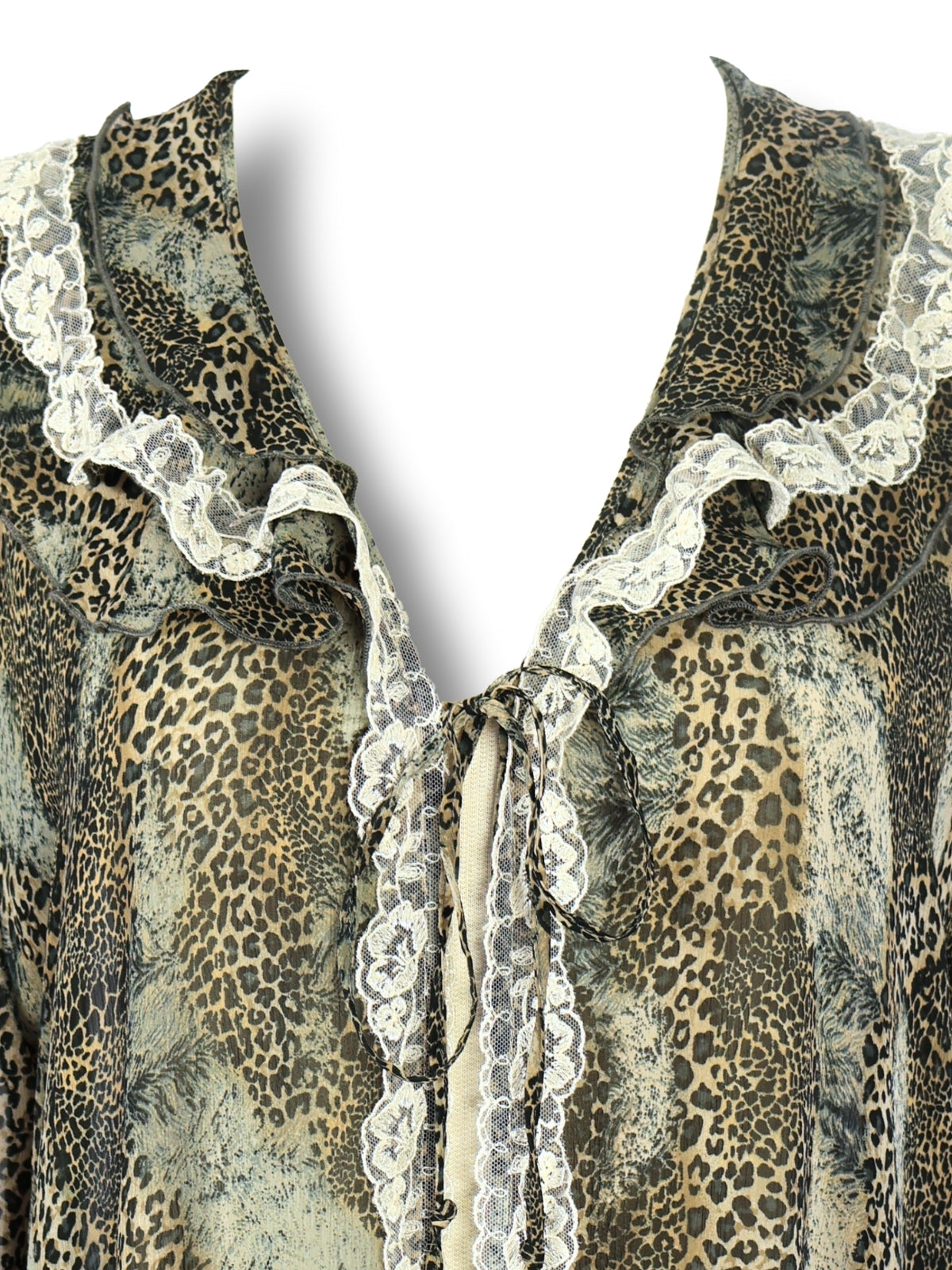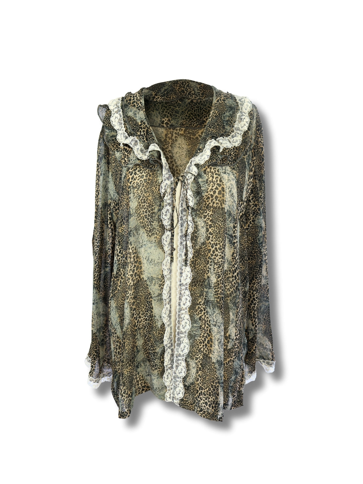 Vahşi Volan – Fransız Dantelli Leopar Desenli İpek Gömlek